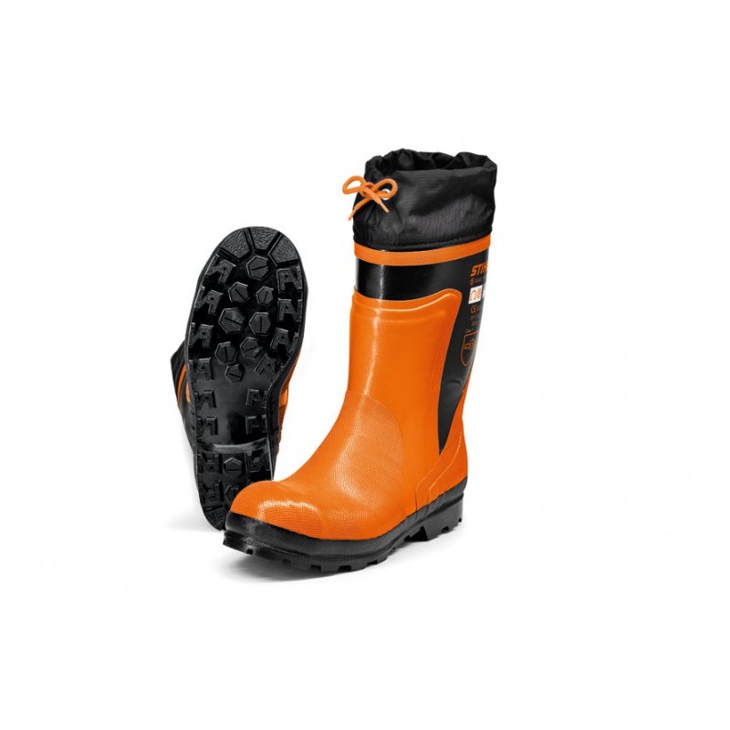 Farba čierno - oranžová. Veľkosť 39 – 47. EN ISO 17249, Trieda 1 (= 20 m/s), pre prácu s motorovou pílou, gumová podrážka s hrubým profilom a dobrým tlmením pri došliapnutí, nastaviteľný textilný golier, ochrana členkov.