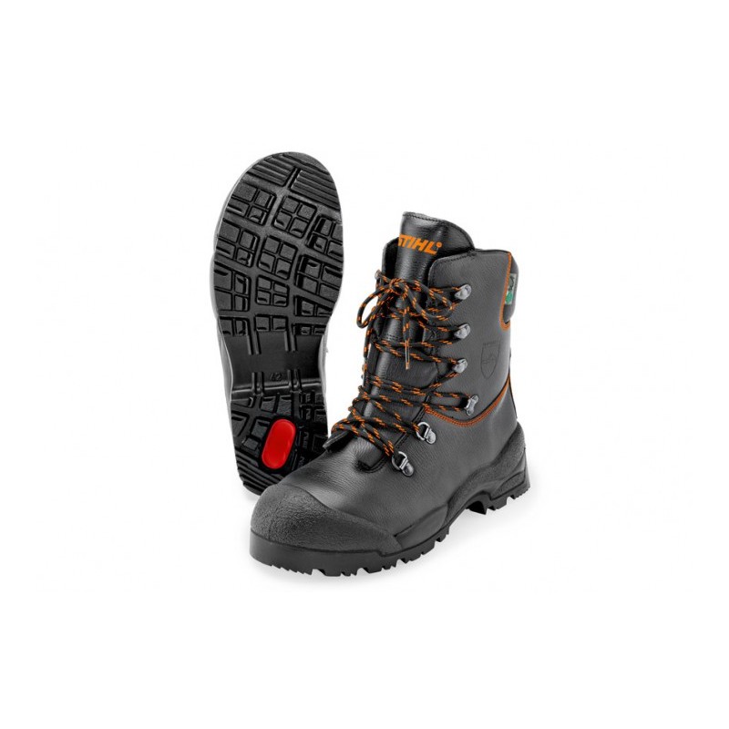 Základný model vysokokvalitných celokožených topánok, podošva s veľmi dobrým uchytením v teréne a priedušná textilná podšívka. Vodeodpudivé. EN 17249, ochrana proti porezaniu trieda 2 (=ˆ 24 m/s) a EN 20345 S2.